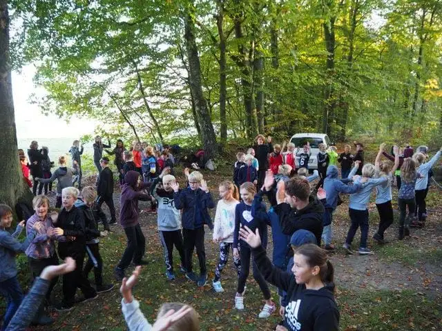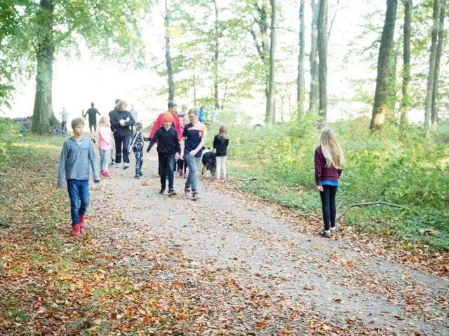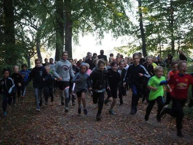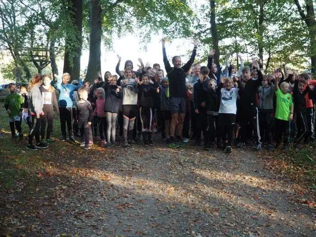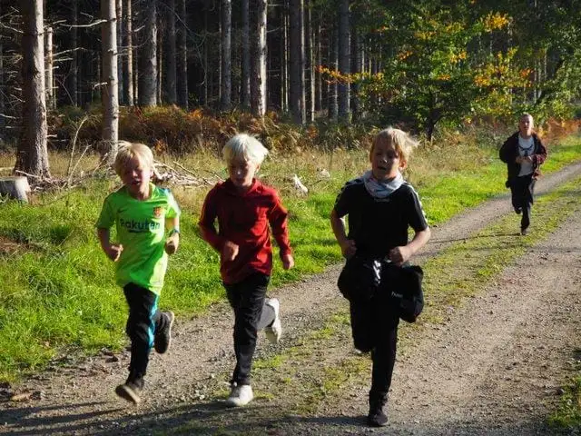 Her løber eller går alle mange km. i en nærliggende skov. Det er altid en hyggelig dag med masser motion og bevægelse med glæde børn og voksne.